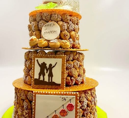 Et voilà le résultat… Notre cliente désirait des détails précis qui comptaient pour les personnes pour qui cette pièce montée était réalisée ce soir…